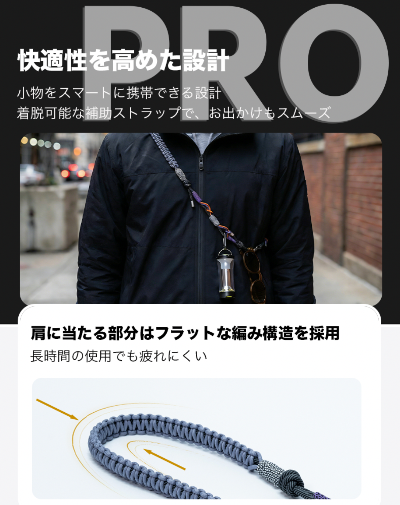 高耐久の合金パーツとスクリューロック構造により、しっかり固定でき安心感のある使用が可能。ショルダー・斜め掛け・ハンドストラップなど多様な使い方に対応し、街歩きや通勤、アウトドア、撮影現場まで幅広く活躍します。